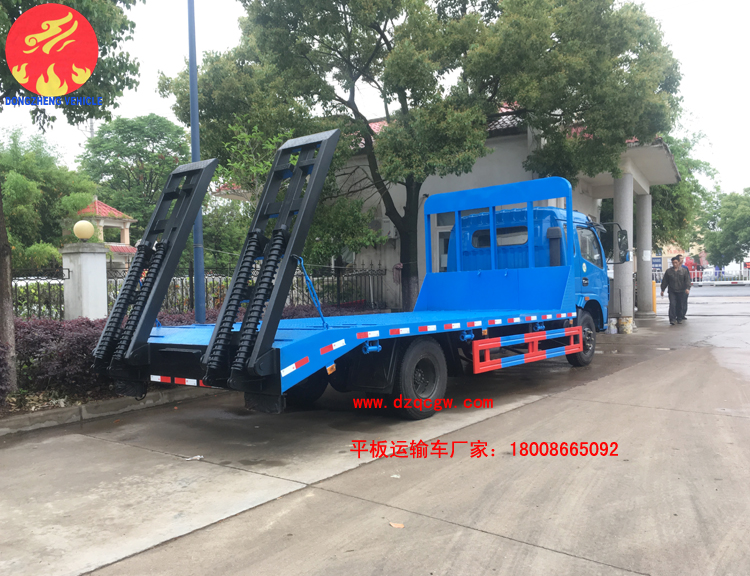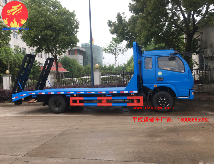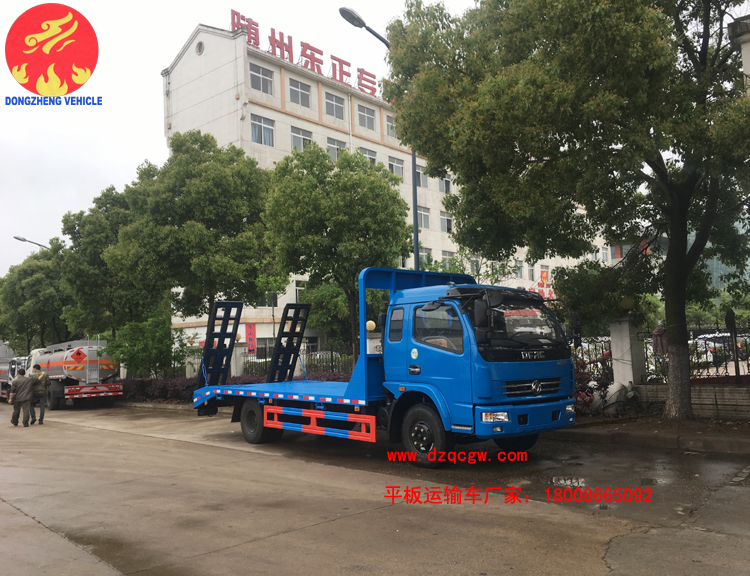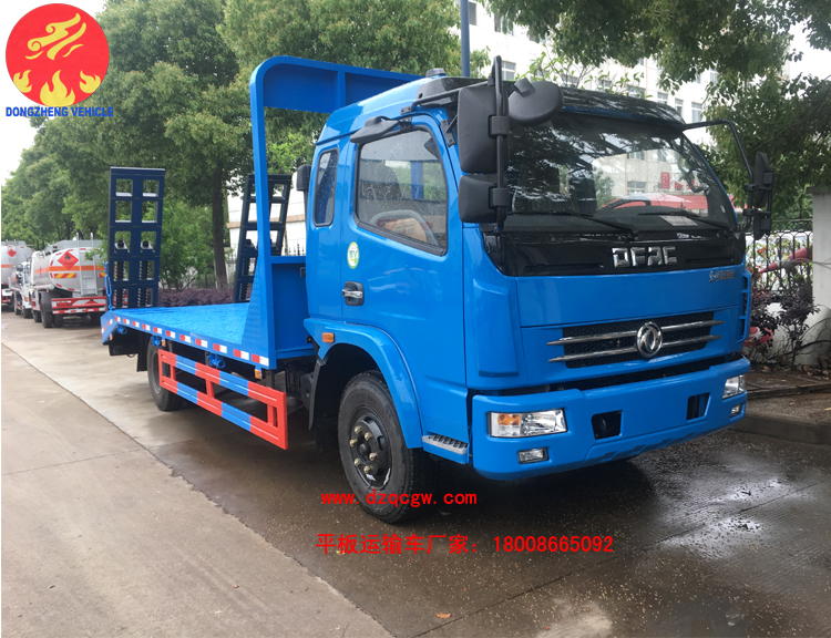 該平板運(yùn)輸車(chē)采用東風(fēng)多利卡排半駕駛室,4400mm軸距,玉柴150馬力或朝柴156馬力柴油國(guó)五發(fā)動(dòng)機(jī),帶燃油和環(huán)保,8.25的鋼絲胎,ABS。板的尺寸5.5米X2.3米,斜坡長(zhǎng)60mm,后雙彈簧,帶爬梯,龍門(mén)架上帶工具箱。