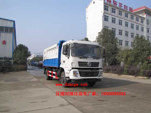 底盤說明:東風(fēng)單橋國五新款駕駛室,可選用3950mm或4500mm軸距,國五康機(jī)170或康機(jī)190馬力發(fā)動(dòng)機(jī),9.00-20尼龍?zhí)ィ?950mm軸距對(duì)應(yīng)前橋3.6噸,后橋9噸,4500mm軸距對(duì)應(yīng)前橋5噸,后橋10噸。斷氣剎,方向助力,ABS,電動(dòng)玻璃,帶下防護(hù)。軸距/整車長對(duì)應(yīng)關(guān)系為(mm):3950/7240,4500/7790。 組成部分:國內(nèi)知名品牌東風(fēng)原裝底盤(全國聯(lián)保)、箱體(密封式)、取力器、多路換向閥、液壓系統(tǒng)、操作系統(tǒng)等組成。 車廂:采用16號(hào)低合金槽鋼與優(yōu)質(zhì)碳鋼鋼板全密封焊接而成,用8組連接板與專用車底盤大梁連成一體,設(shè)計(jì)美觀、結(jié)構(gòu)合理,裝卸方便。 進(jìn)料結(jié)構(gòu):壓縮垃圾站將垃圾壓縮成塊后將垃圾塊垂直舉起,并打開壓縮箱排泄門,這時(shí)垃圾車箱體后門向上旋轉(zhuǎn)開啟,垃圾車后門與壓縮箱后門對(duì)接,之后垃圾塊被壓縮箱內(nèi)的推板水平推進(jìn)到垃圾車箱體內(nèi),完成垃圾裝載后關(guān)閉垃圾車后門,將垃圾運(yùn)到垃圾處理地進(jìn)行傾卸。 卸料結(jié)構(gòu):系用箱卸料,由兩只液壓油缸直接舉升車廂進(jìn)行卸料,箱底與地面夾角不小于45度,以實(shí)現(xiàn)垃圾依靠自重能自行卸下的專用自卸運(yùn)輸車。 液壓系統(tǒng):由油箱、油泵、多路換向閥、液壓缸、濾油器和管路組成,該系統(tǒng)能實(shí)現(xiàn)裝卸垃圾的各種專用功能。 操作系統(tǒng):通過該系統(tǒng)可以實(shí)現(xiàn)各功能的轉(zhuǎn)換。通過操縱多路換向閥的手柄可完成裝料和卸料工作。(在操作多路換向閥時(shí)應(yīng)掛上取力器帶動(dòng)油泵工作) 主要特點(diǎn):垃圾收集方式簡便、高效.環(huán)保性好(不產(chǎn)生二次污染),整車?yán)眯矢,質(zhì)量可靠,故障率低,維護(hù)方便,運(yùn)行費(fèi)用低等特點(diǎn)。 |