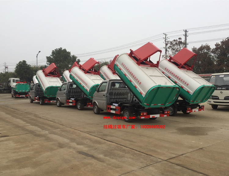 我公司掛桶垃圾車(chē)主要性能:采用鏈條和液壓油缸聯(lián)動(dòng)裝置,實(shí)現(xiàn)對(duì)垃圾斗提升和翻轉(zhuǎn),將多處垃圾斗內(nèi)的垃圾自動(dòng)收入車(chē)廂,并到目的地一次性自卸出來(lái)。具有全密封,自裝自卸功能,液壓操作。適用于全國(guó)通用標(biāo)準(zhǔn)的垃圾桶:鐵桶、塑料桶,并大量供應(yīng)垃圾掛桶。